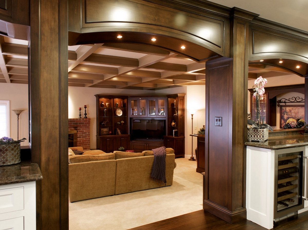 Арки и ниши можно и нужно декорировать. Для этого применяют подсветку, полочки, шторы. В ниши можно встроить элементы натурального дерева, лепнины, стекла, витражей, металла и эко кожи, которые станут неповторимой деталью интерьера. Арку можно поставить на опору – пилястры или колонны. Умело используя перечисленные приемы, легко изменить восприятие пространства.